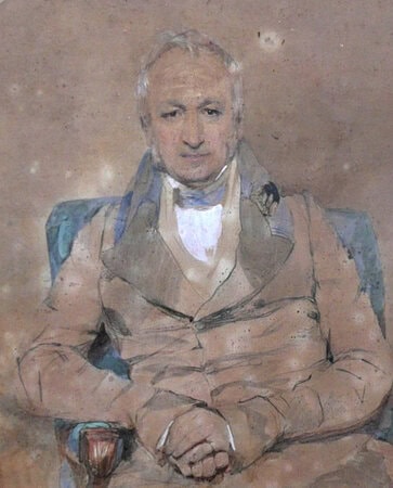 A faded portrait by an unknown artist, this time on paper, shows John Dean Paul in later life. His hair is white, his tan jacket is more crumpled and less flamboyant, but the dark eyes, high hair line and facial features are recognisable from Wood’s youthful depiction of 1802.(f)